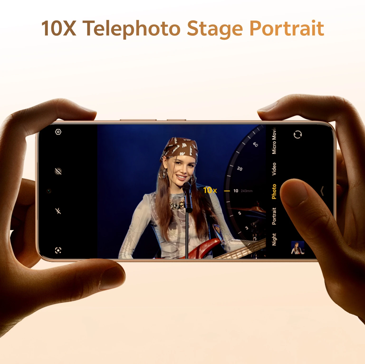 Rear Camera Setup: 50 MP (f/1.88 Aperture) ZEISS OIS main camera: OIS, f/1.88, FOV 84° ± 3°, 6P lens + 50 MP (f/2.65 Aperture) ZEISS super telephoto camera: OIS, f/2.65, FoV 33.1°, 4P lens + 8 MP (f/2.0 Aperture) ZEISS ultra wide-angle camera: f2.0, FoV 120° ± 3, 5P lens, Features: Photo, Portrait, Night, Video, Micro Movie, High resolution, Pano, Ultra HD Document, Slo-mo, Time-lapse, Supermoon, Astro, Pro, Snapshot, Food, Underwater Photography, Dual View, Film Camera
