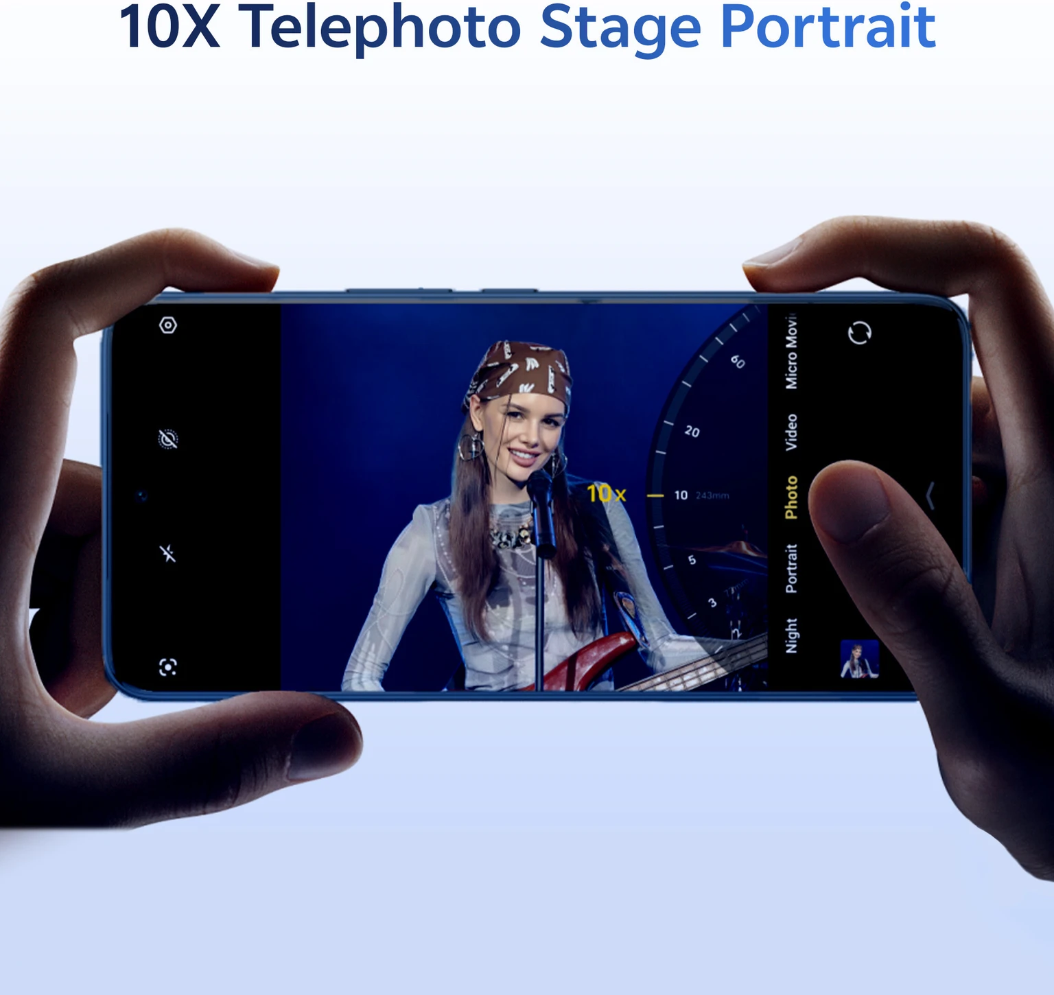 Rear Camera Setup: 50 MP (f/1.88 Aperture) ZEISS OIS main camera: OIS, f/1.88, FOV 84° ± 3°, 6P lens + 50 MP (f/2.65 Aperture) ZEISS super telephoto camera: OIS, f/2.65, FoV 33.1°, 4P lens + 8 MP (f/2.0 Aperture) ZEISS ultra wide-angle camera: f2.0, FoV 120° ± 3, 5P lens, Features: Photo, Portrait, Night, Video, Micro Movie, High resolution, Pano, Ultra HD Document, Slo-mo, Time-lapse, Supermoon, Astro, Pro, Snapshot, Food, Underwater Photography, Dual View, Film Camera